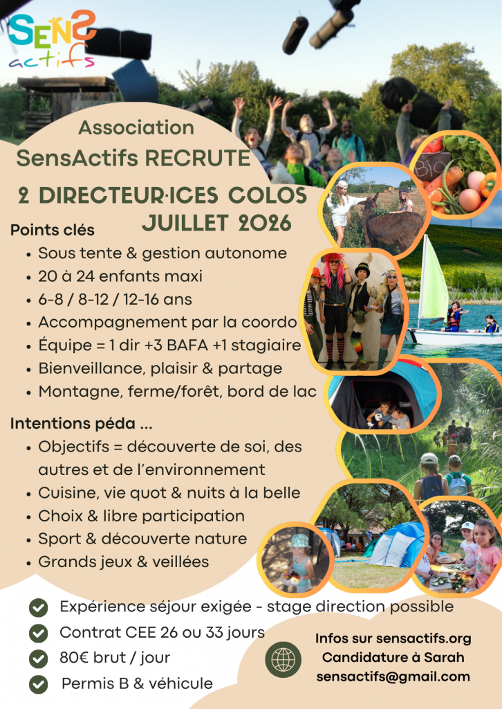 Il te suffit d’envoyer un mail avec CV + une présentation de ce qui te motive dans l’animation + tes dispos à apo.sensactifs@gmail.com « candidature accueils de loisirs 2026″ en sujet.